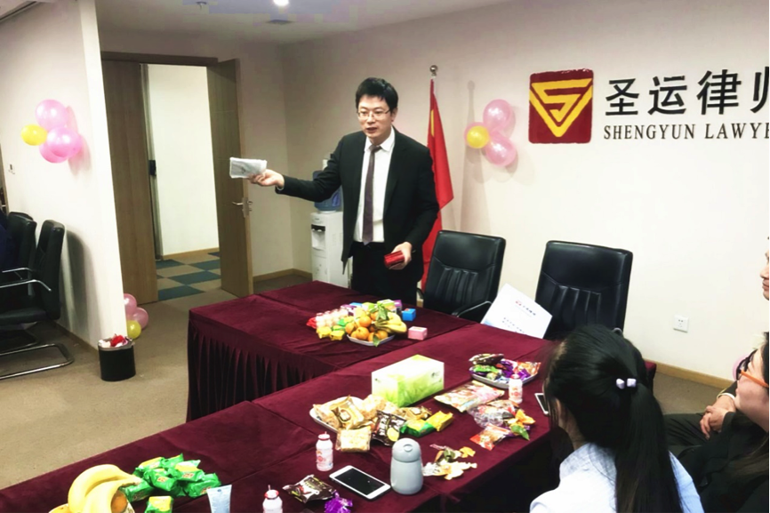 昨天是感恩节,圣运律师事务所如期举办了11月的生日会。虽然只有两位同事在本月过生日,但这反而给了他们更多"发言权"。 其中一位刚入职的新朋友说,来公司复试那天顺利通过正好是自己的生日,当时许愿希望己能够通过,结果今天就参加上了公司的生日会,觉得是种幸运,也是种缘分。