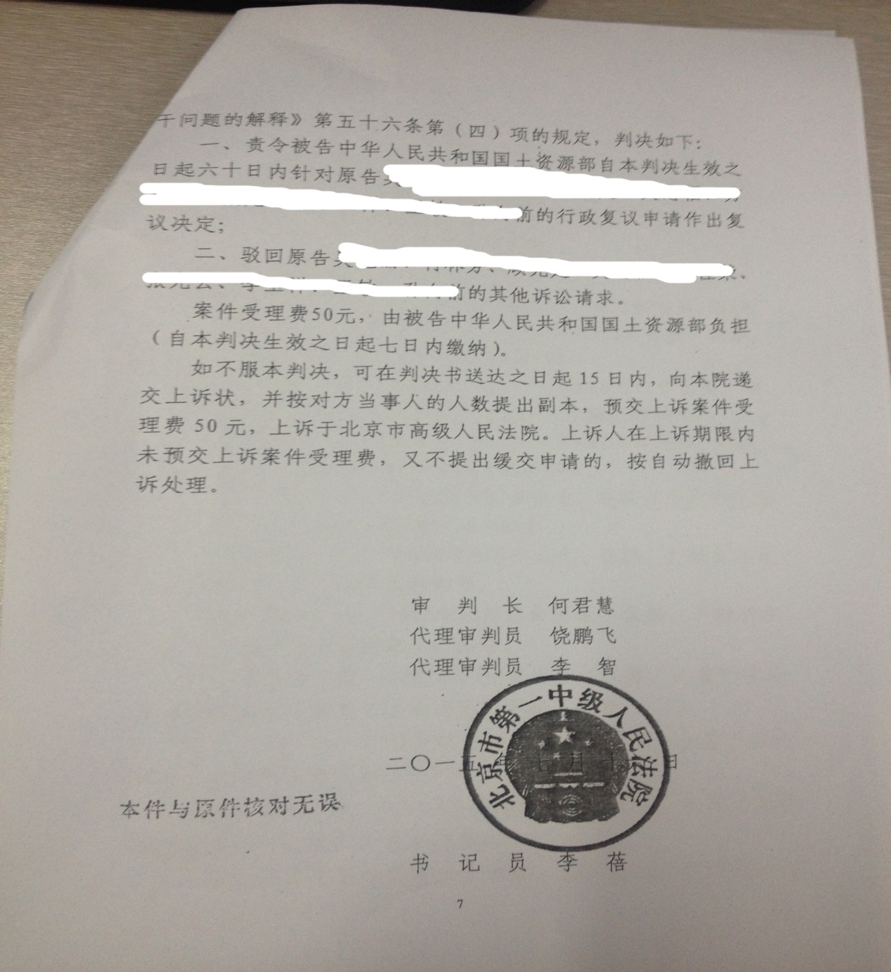 湖北拆迁系列之:法院责令国土资源部履行行政复议职责