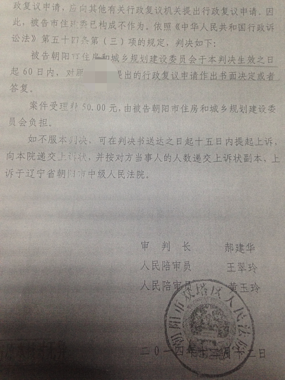 维权道路一波三折,最终法院支持了王先生的诉讼请求。决定住建委对王先生提出的行政复议申请做出书面决定或者答复。