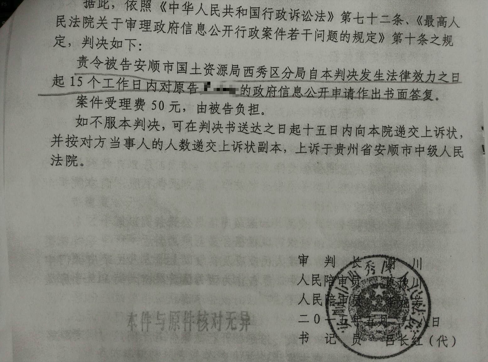 贵州拆迁系列之:法院判令国土局限期履行政府信息公开职责