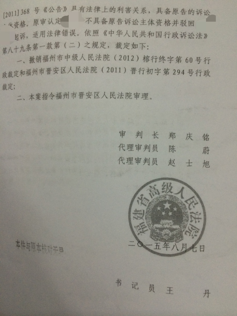 福建拆迁系列之: 原审法院错判、圣运力挽狂澜