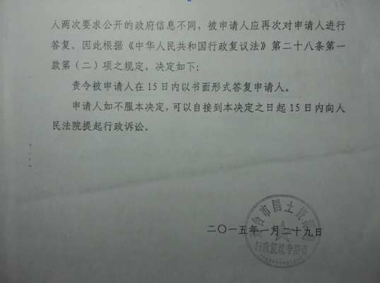 河北拆迁系列之:行政复议促国土资源局履行政府信息公开职责
