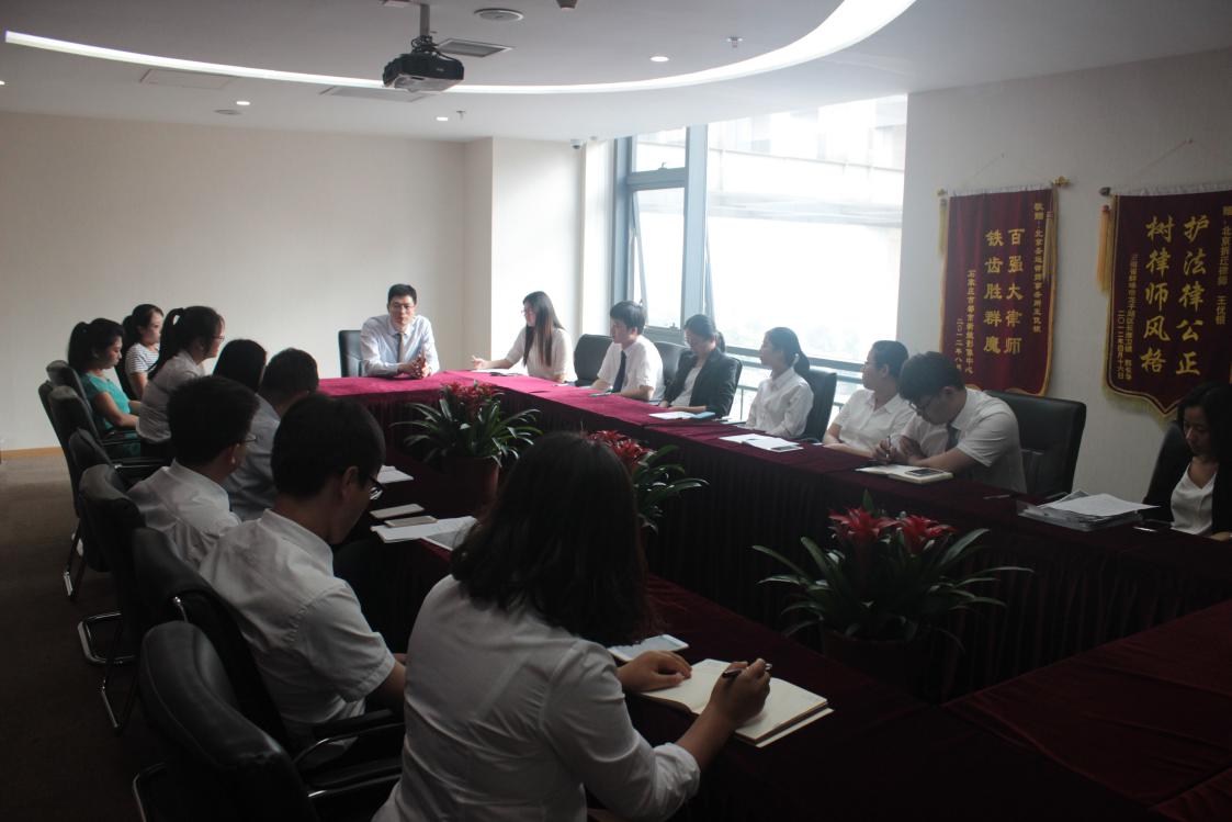 在王主任表达了自己对每一位新人的要求和期望后,各新老员工开始分享自己在圣运工作的体会和经验。已入职四个月的黄安达助理表示,自己在圣运最大的收获是,作为新人可以接触到大量的案件,并且可以真刀真枪地在最前线与当事人接触,而不是机械地完成主办律师的要求,"实战"使自己的工作能力得以快速提高,也由此喜欢上了行政业务。在圣运工作时间比较长的王兰助理和付璐助理则鼓励各位新入职的小伙伴不要被眼前暂时的办案压力吓到,圣运的每一个专业律师都是通过办理大量的案件打磨出来的,克服过去才能成长地更快。