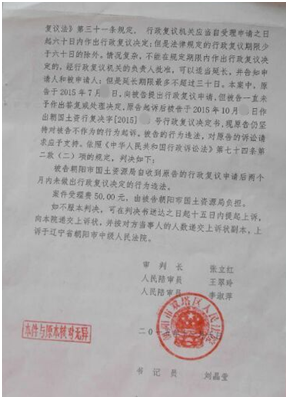 申请不理会,复议也不理会,到底国土局要懈怠到什么时候?在王有银律师的帮助下,吴先生于2015年9月某日向当地法院起诉了朝阳市国土局,要求法院依法判定其未履行行政复议法定职责的行政不作为违法。收到起诉状副本,朝阳市国土局这才慌了,在开庭前两日匆匆将行政复议决定书送到了吴先生手上。