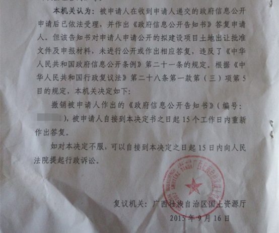 广西农村征地案例:国土局信息不公开,行政复议终取胜