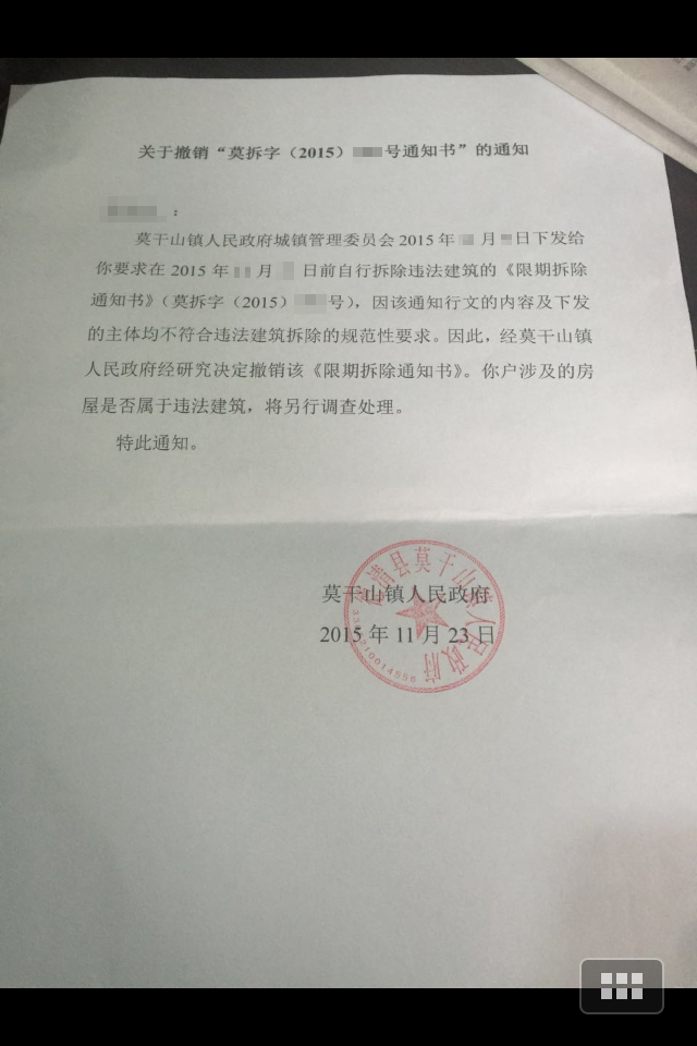 浙江农村拆迁案例:政府复议后依法撤销行政决定