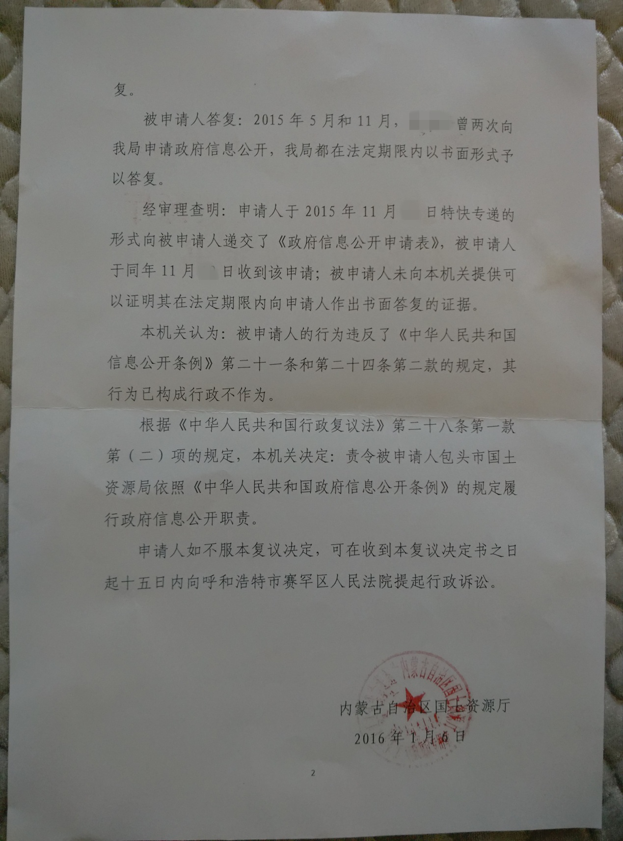 内蒙古拆迁案例:政府信息不公开 行政复议解难题