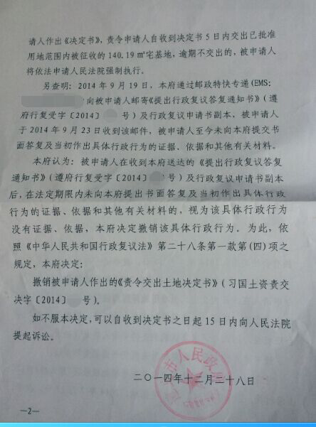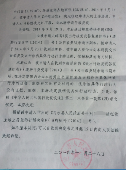 2014年7月,在贵州习水县某村拥有合法房屋的赵女士,收到习水县国土资源局作出的《责令交出土地决定书》及习水县人民政府作出的《习水县人民政府关于对赵某某被征收土地上的房屋补偿决定》,告知赵女士其所有的宅基地已被征为国有,限期搬迁。赵女士认为《补偿决定》和《决定书》违法,严重侵犯其权利,为了维护权益,赵女士聘请圣运律师事务征地拆迁业务部主办律师董再国帮助维权。