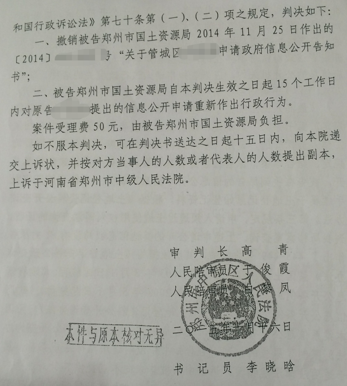 圣运捷报:河南征收??诉政府不履行信息公开职责胜诉案例