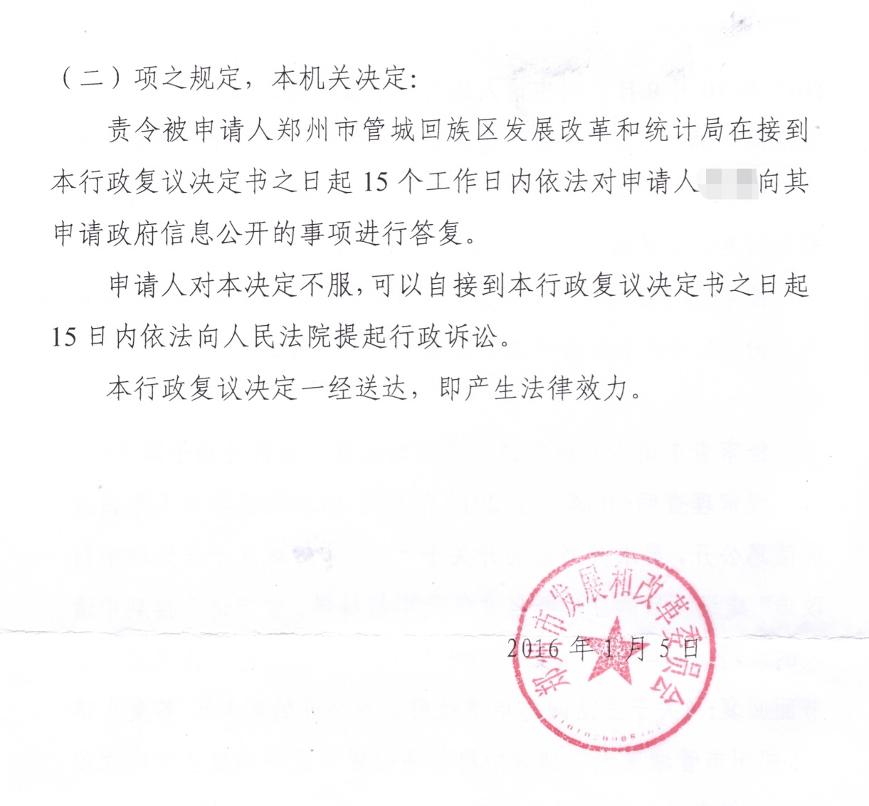 圣运捷报:复议郑州管城区发改和统计局胜诉