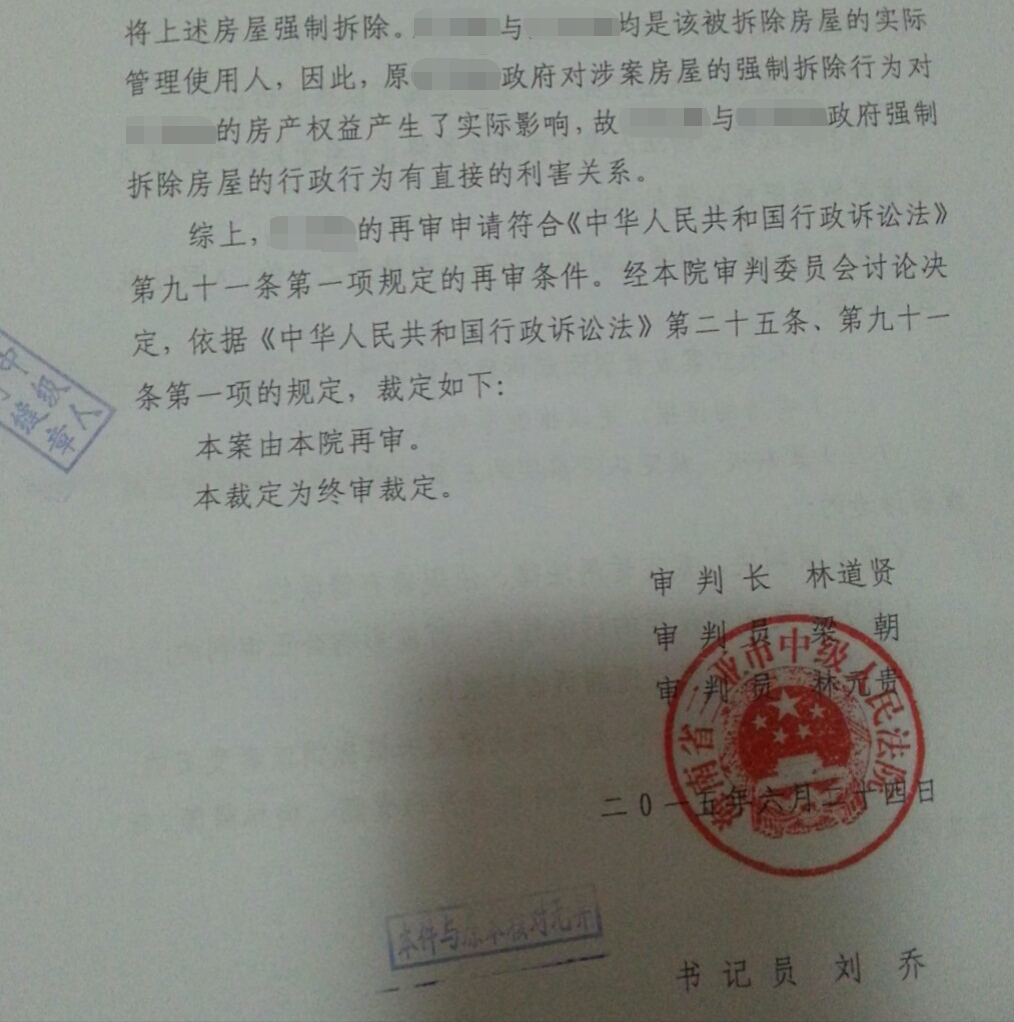 雷女士是海南省三亚市吉阳区某村村民,在该村拥有合法的住房一处,因历史原因其住房没有办理产权登记。2015年3月9日,该村村委会向吉阳区政府出具了雷女士享有涉案房屋所有权的证明。吉阳区政府以《三亚市XX镇人民政府通知》的形式将雷女士的房屋进行了拆除,雷女士认为该拆除行为侵犯了自己的合法权益,便委托了北京圣运律师事务所刘宏国律师担任自己的代理人,帮助自己维权。刘律师接受委托后,对案件进行了专业的分析,并及时指导雷女士向人民法院提起了行政诉讼。但一审法院以雷女士与本案拆除行为没有法律上的利害关系为由驳回了起诉。案件经上诉后,二审法院以同样的理由维持了一审法院的裁定。为了使雷女士的合法权益得到有效保障,刘宏国律师决定帮助雷女士向三亚市中级人民法院申请再审。