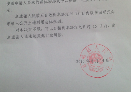 2015年4月31日,以丁先生为代表,7位村民向被申请人阜城县人民政府提交书面申请,要求其以书面方式公开该区域的土地利用总体规划。但是,被申请人在收到申请后,在15个工作日内未给予其任何答复,也没有任何延期公开的说明。面对被申请人这种不履行信息公开法定职责的行为,圣运律师决定帮助村民们向阜城县人民政府提起行政复议,追究被申请人的违法责任,维护丁先生等村民的合法权益。