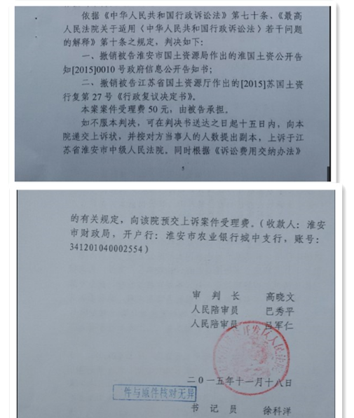 圣运捷报:诉江苏两级国土部门胜诉