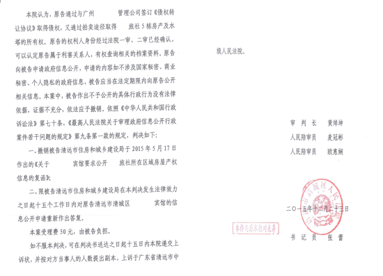 圣运捷报:诉广东清远住建局胜诉