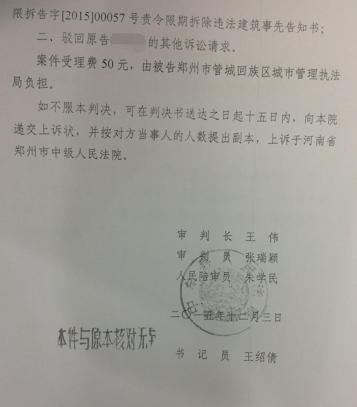 河南省中牟县人民法院在对案件进行了依法审理后,根据《中华人民共和国行政诉讼法》的相关规定,作出判决:撤销郑州市管城回族区城市管理执法局作出的管限拆告字【2015】00057号责令限期拆除违法建筑事先告知书。