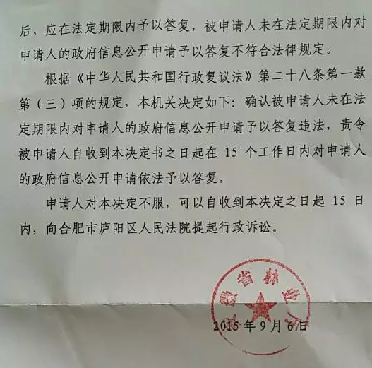 主任及其团队主办律师担任自己的代理人。圣运律师在接受委托后,于2015年6月14日帮助李先生向六安市林业局书面提出政府信息公开申请,要求其公开被征收区域的砍伐许可证和土地转用批准材料等文件。六安市林业局收到申请后,并未在法定期限内给予申请人以任何答复。于是,在圣运律师的指导下,李先生向安徽省林业厅提出行政复议的申请。