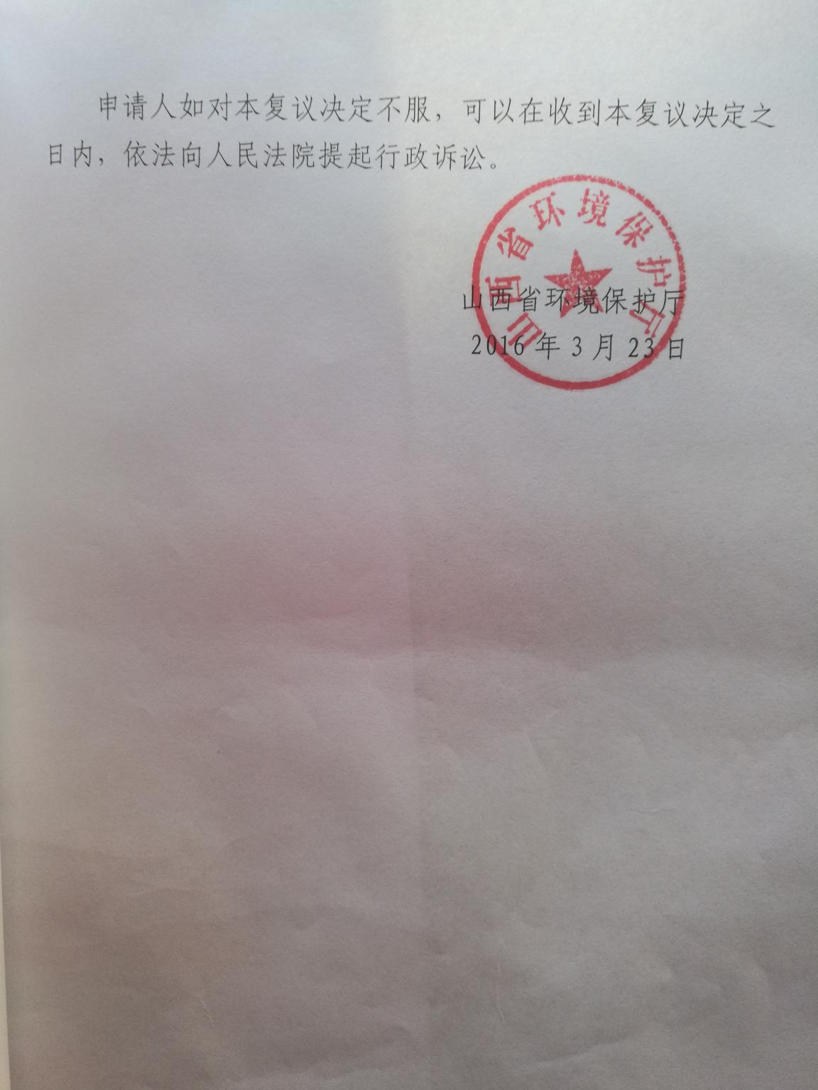 圣运捷报:复议胜山西省太原市环境保护局