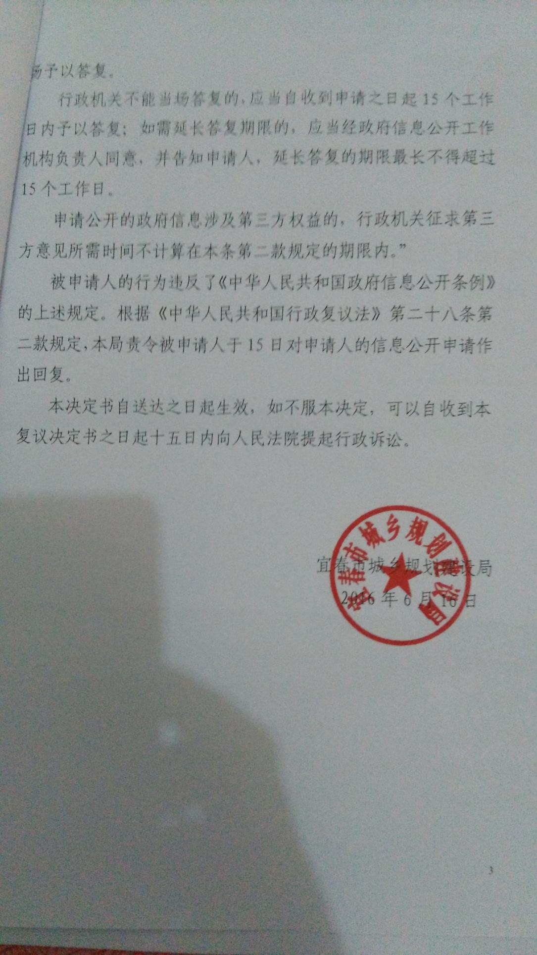 宜春市城乡规划局受理当事人的行政复议并对案件进行依法审理后,决定:责令被申请人靖安县城乡规划局法定期限内对申请人邹先生申请的政府信息公开作出答复。