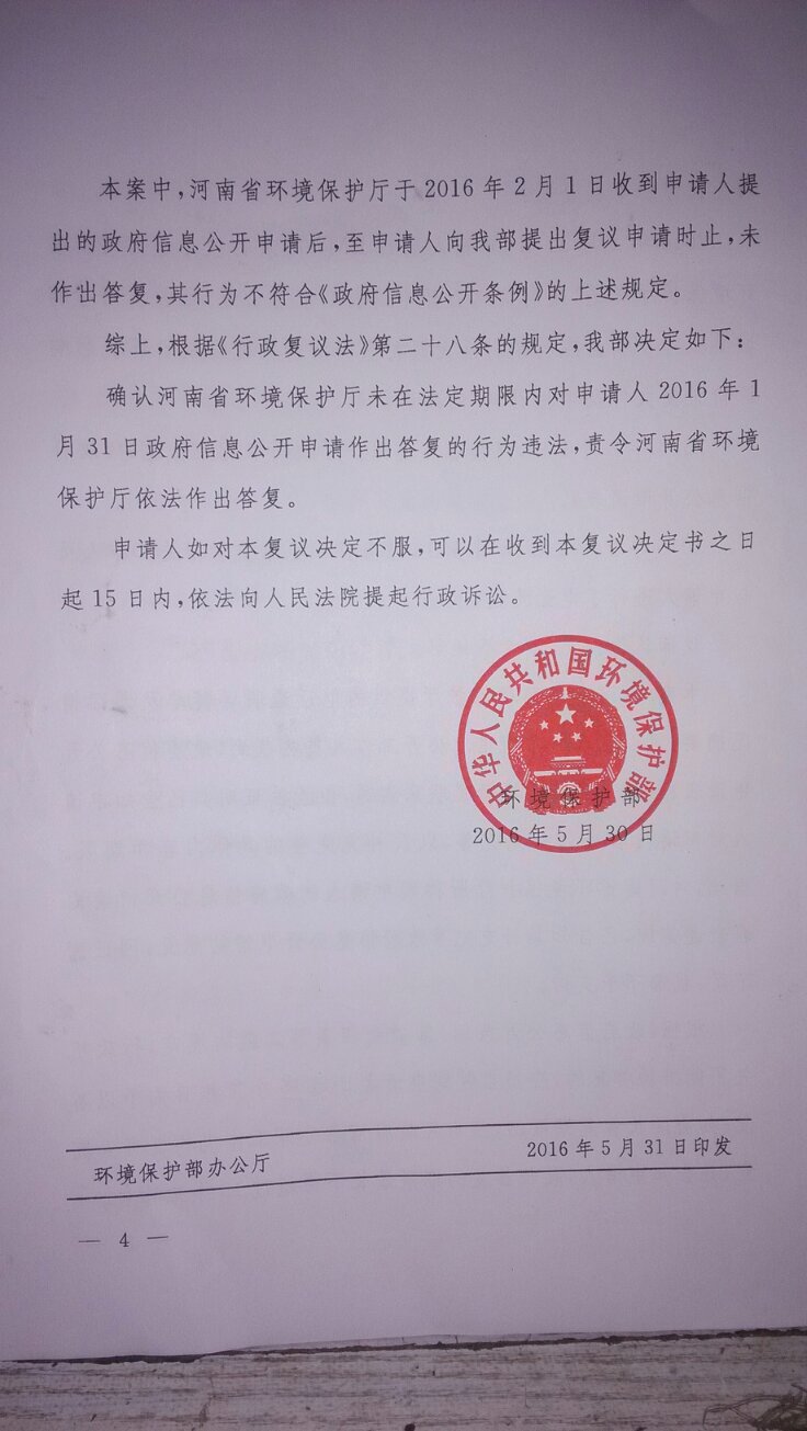 圣运捷报:复议胜河南省环境保护厅
