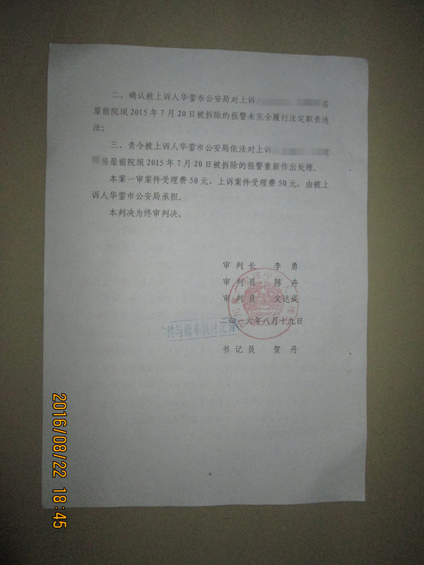 圣运律师事务所在接受委托后,根据李先生案件的实际情况制定好维权方案,最终决定由王有银律师和其团队主办律师鲁金艳律师代理该案件。在律师介入之后,根据李先生提供的信息,鲁律师通过李先生提供的现场照片发现被告华莹市公安局在处理这起案件过程中并没有完全履行自己的职责,所以鲁律师紧紧抓住该违法点,在最佳时机迅速向四川省广安市前锋区人民法院提起了行政诉讼,但是广安市前锋区法院经过审理判决驳回了李先生的诉讼请求。在此情况下,鲁律师上诉至广安市中级人民法院,广安市人民法院依据《中华人民共和国行政诉讼法》《中华人民共和国警察法》《中华人民共和国治安管理处罚法》的相关规定确认判决撤销了四川省广安市前锋区人民法院作出的对李先生的一审判决,确认了华莹市公安局对李先生房屋前院坝被拆除的报警未完全履行法定职责违法,责令华莹市公安局依法对李先生房屋前院坝被拆除的报警重新作出处理。