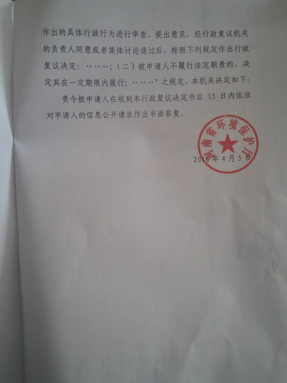 河南省环保厅受理当事人的行政复议并对案件进行依法审理后,决定:责令被申请人15日内依法作出书面答复。