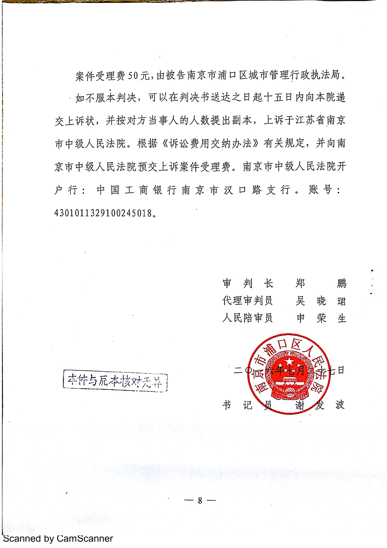 圣运捷报:诉讼胜江苏省南京市浦口区城市管理行政执法局
