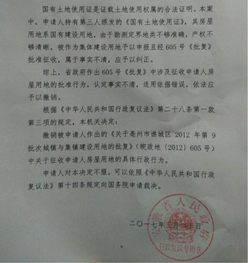 安徽征收案例:政府胡乱征地,批文终被撤销