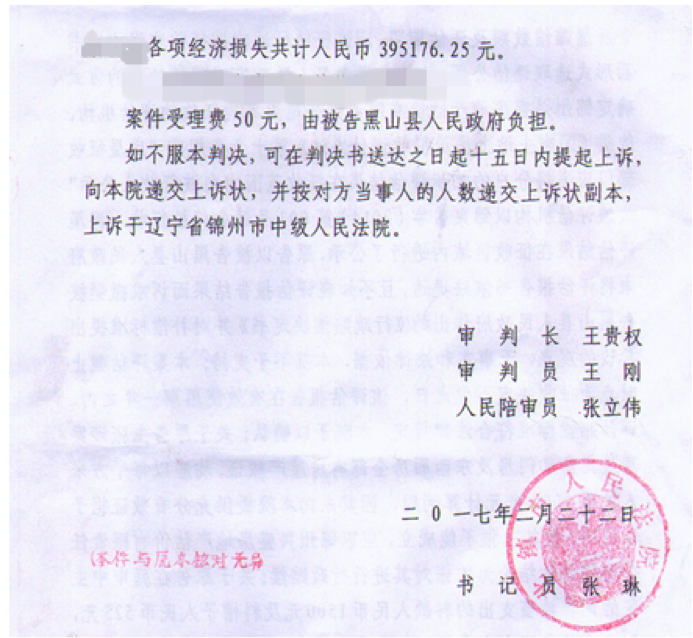 圣运捷报:胜诉辽宁省黑山县人民政府