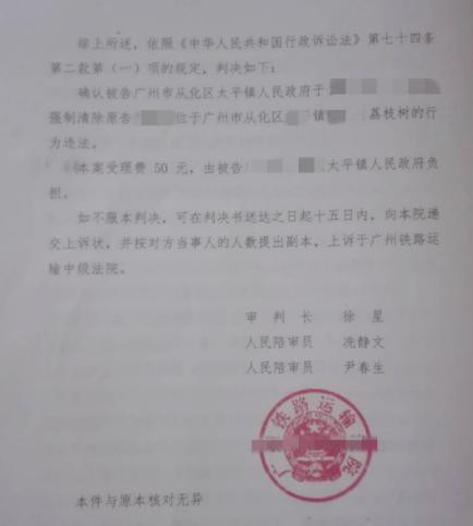 法院经审理查明案情后,采纳了圣运律师的意见,确认了镇人民政府强制清除杜先生果树的行为违法。
