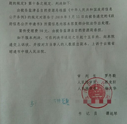 法院经审理后,对圣运律师的意见予以支持,判决盐津县自然资源局根据规定对刘先生2019年5月11日递交的《政府信息公开申请书》所需信息内容未答复部分依法作出处理。