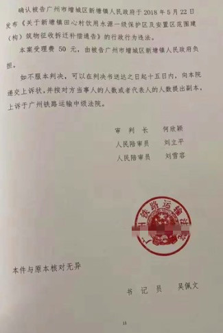一审法院在查明案情后,认可圣运律师的相关意见,确认了广州市增城区新塘镇人民政府于2018年5月22日发布的《关于新塘镇田心村饮用水源一级保护区及安置区范围建(构)筑物征收拆迁补偿通告》的行政行为违法,为潘女士日后争取合理的拆迁安置补偿标准打下了良好的基础。