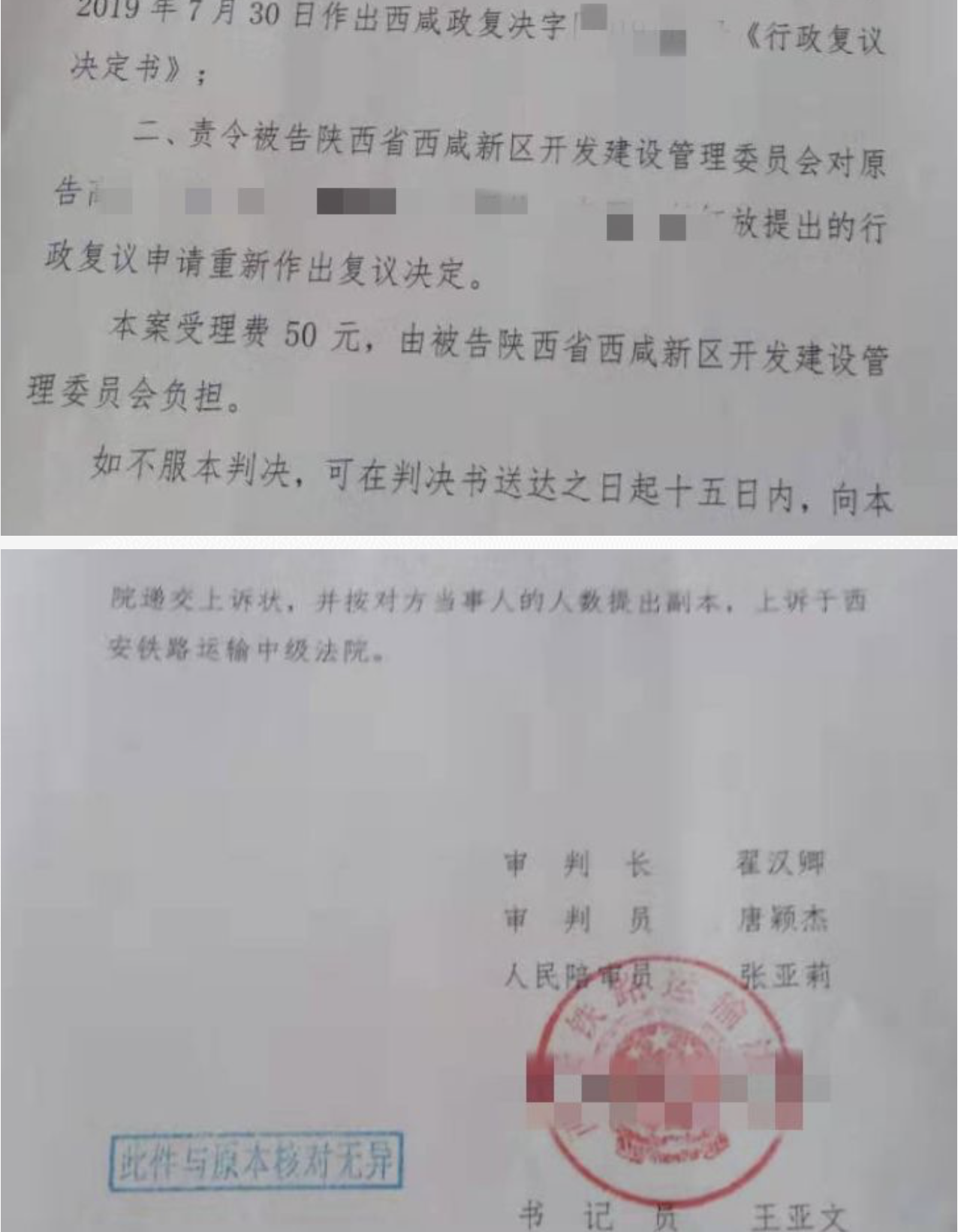 法院经查明案情后,认可了圣运律师的意见,判决撤销了陕西省西咸新区开发建设管理委员会于2019年7月30日作出的《行政复议决定书》,并责令其对何先生等6人重新作出复议决定。