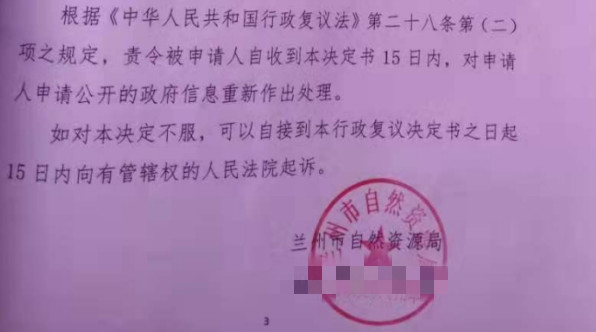 经圣运律师查询,兰州市自然资源局七里河分局自2019年10月23日签收后,未做出任何的答复。