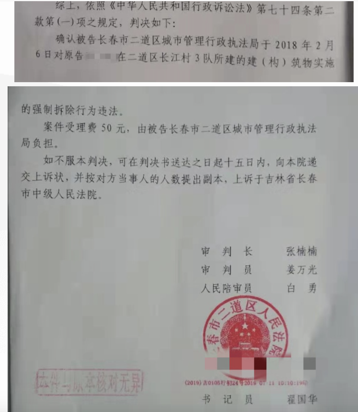【圣运第2100起胜案】吉林胜案:地上物遭强拆,法院判决确认违法