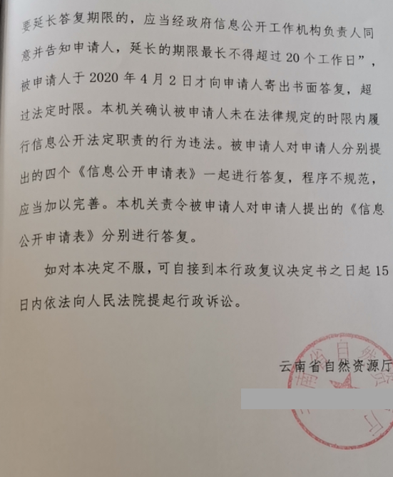 复议机关认可了圣运律师的意见,作出决定确认了昆明市自然资源和规划局未在法律规定的时限内履行信息公开法定职责的行为违法,对孟先生提出的四个申请一起进行答复的程序也不规范,应当分别进行答复。
