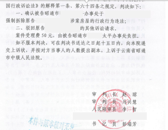 法院查明案情后,认可了圣运律师的意见,判决确认被告昭通市某区办事处的强制拆除行为违法。该胜诉判决为刘女士二人接下来的维权道路奠定了良好的基础,期望在与律师的沟通配合下,刘女士二人能够成功维权。