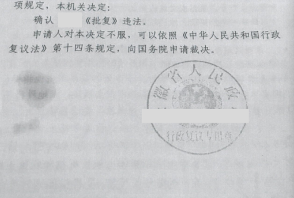 复议机关经审理后,认可圣运律师的意见,确认了涉案《批复》违法。该结果奠定了王先生下阶段维权进程的基础,期望圣运律师能协助王先生尽快取得维权成功。