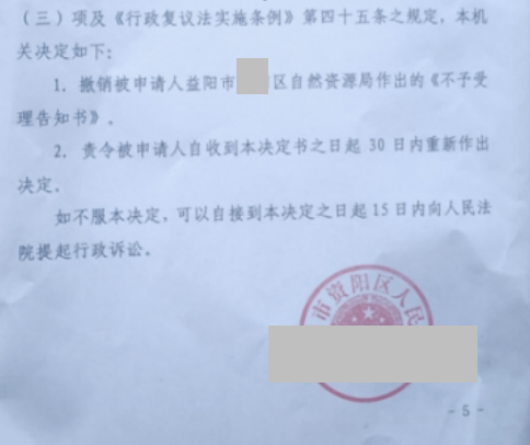 圣运律师认为,我国《土地管理法》规定,任何单位和个人都有遵守土地管理法律、法规的义务,并有权对违反土地管理法律、法规的行为提出检举和控告。湖南省当地的《土地管理实施办法》中也规定了,县级以上人民政府土地管理部门的主要职责是负责土地监察、查处违反土地管理法律、法规的行为。因此,赵先生依据法律规定向区自然资源局提交《查处申请》,是要求区自然资源局履行法定职责,申请其启动行政执法程序的方式之一,不属于信访事项。因此,针对该《不予受理告知书》,圣运律师协助赵先生提起了行政复议。