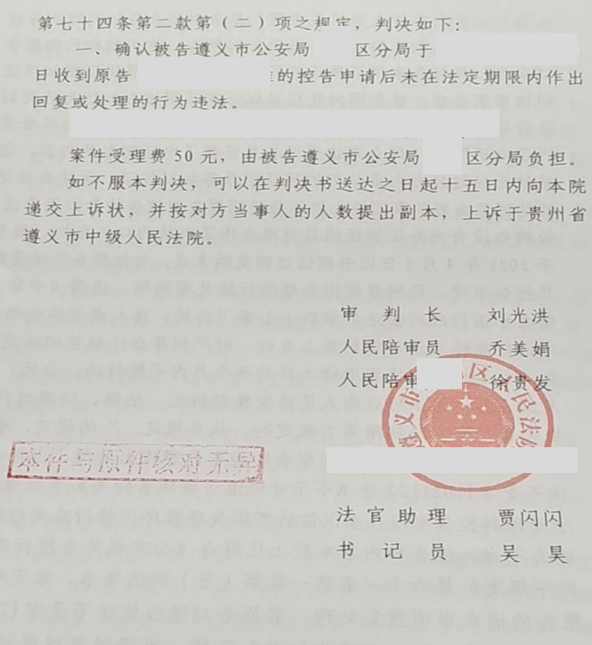 法院经审理后,认可圣运律师的意见,判决确认遵义市公安局某分局收到陈先生2人的控告申请后未在法定期限内作出回复或处理的行为违法。该结果表示着郭先生的维权之路在依照办案计划向前推进,期望在律师的协助下,郭先生尽快取得自己的合理补偿。