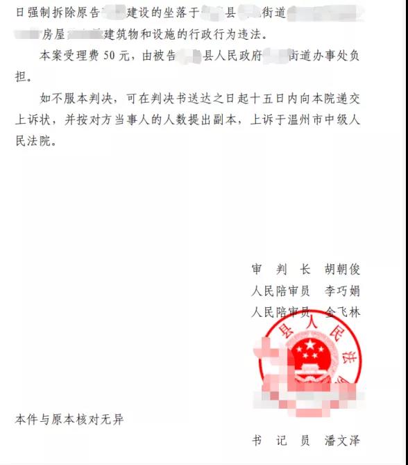 法院经审理后,认可圣运律师的意见,判决确认县政府街道办事处强拆叶女士第六层建筑物和设施的行政行为违法。