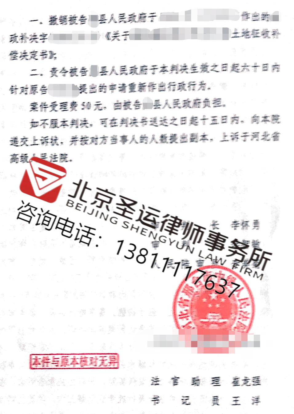 法院经审理后,认可了圣运律师的意见,判决撤销县政府作出的《土地征收补偿决定书》,责令县政府在判决生效之日起六十日内对史先生提出的申请重新作出行政行为。