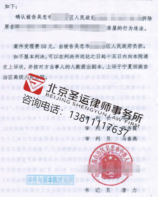 在圣运律师的良好建议和积极沟通下,法院采纳了圣运律师的意见,判决确认区政府强拆袁先生合法房屋的行为违法。