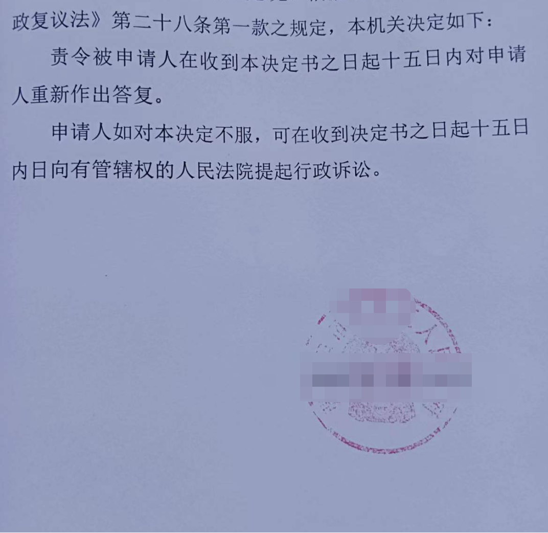 在圣运律师的协助与推进下,复议机关责令区住房和城乡建设局在收到决定书之日起十五日内对杨女士等人重新作出答复。也为下阶段维权进程的开展奠定了良好的开端。期望在圣运律师的协助下,委托人的合法权益能够早日得以维护。
