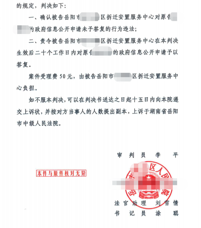 在圣运律师的协助与推进下,法院认可了圣运律师的意见,判决确认岳阳市某区拆迁安置服务中心对贾女士的政府信息公开申请未予以答复的行为违法,并在判决生效后的二十个工作日内对贾女士的政府信息公开申请予以答复。