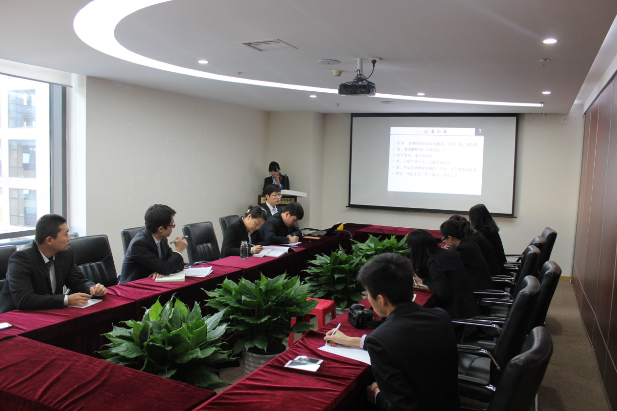 随着喜迁新址,王有银主任团队也不断壮大,数位律师和助理、秘书的加入,为团队注入了新鲜的血液。因此,为强化办案质量,增进团队建设,2016年1月26日下午,圣运律师事务所王有银主任团队在北京总部第一会议室举行团队内部培训会。全体新入职人员参会,王有银主任则根据多年来办理征地拆迁案件的经验,为大家细致解读如何成为一名合格的行政法律师。