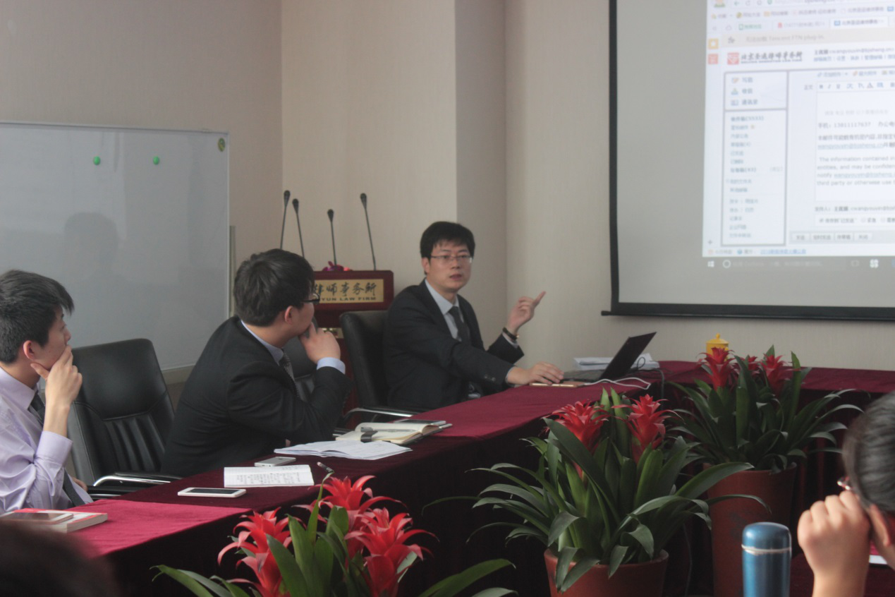 北京圣运律师事务所王有银主任律师团队4月22日下午在第一会议室召开了案例研讨会,此次研讨会有两个主题。一是王主任对团队律师的日常工作规范提了要求和建议,二是王主任结合具体的案例对律师在实践中遇到的问题作了经验性的解说和技巧上的指导。