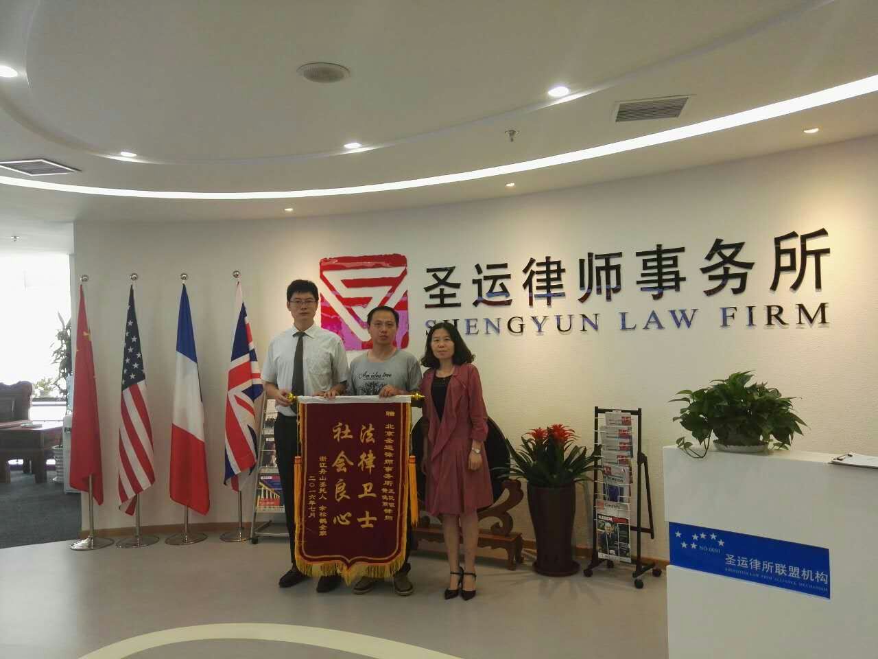 2016年8月16日,圣运律师事务所迎来了当事人赠送"法律卫士,社会良心"锦旗。来自浙江舟山的余先生手捧锦旗,再三感谢王有银主任律师及其团队黄晓丽律师为他提供的法律指导,让他在两个月前了却一桩心事,顺利拿到属于他的补偿款项。