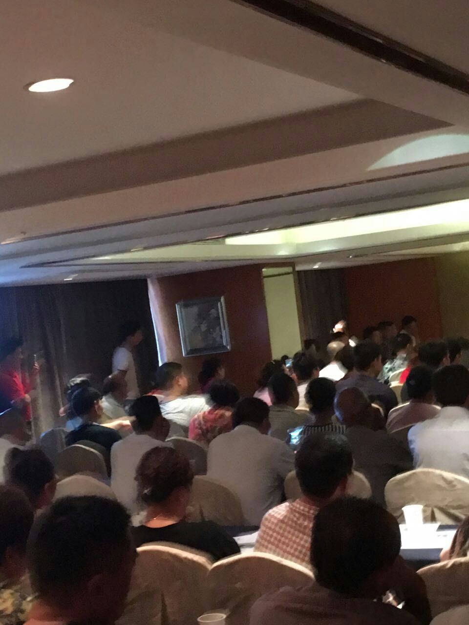 拆迁维权普法现场,王有银主任慷慨激昂,参加普法讲座的各位居民也听得聚精会神。