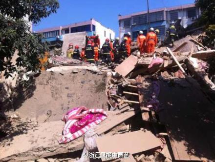 【浙江宁波奉化市一幢5层居民楼"粉碎性"倒塌 目前仅救出3名被埋者】今早九点,浙江宁波奉化市消防接到报警,大成路居敬小区一幢5层居民房楼倒塌,该楼建成较早,有居民居住,具体坍塌时间尚不确定。目前已救出三人,仍有人被埋,大型设备无法进入,只能徒手开展救援。(央视)