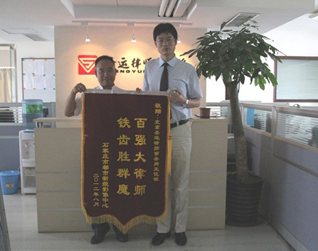 【本网讯】2012年7月17日,我所河北石家庄市当事人拆迁案获得最终胜诉,8月12日,特向我所及案件代理律师王优银赠送锦旗,表示感谢。